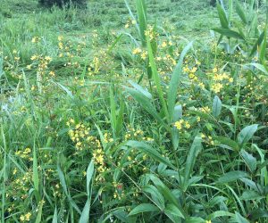 雨天のため延期になっていた犬挟湿原の草刈り保全活動を7月18日(木)10名で行いました。今年は葦があまり大きくなっておらず,葦・姫ザサ・ノイバラをどんどん刈りました。慣れたものであっという間に,1時間程度で草刈り終了。その後30分ほど休憩・情報交換して解散しました。