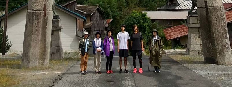 9月21日(日)秋の蒜山ウォーキングを開催しました。今回は、大山道の一部と山中一揆の史跡一部を歩く12Kmのコースです。当日はあいにくの雨模様でしたが雨具や傘を使い、道端の草花にも目をやりながら歩く。大山遥拝所・展望台ではガスがかかり、景色をあまり見ることができませんでしたが、大山道を紹介したあと全員で集合写真を撮影。その後、茅部神社・郷原の街並みを~大鳥居の前へ。山中一揆の史跡、田部義民の墓に立ち寄り山中一揆について説明。参加者からは「地元参加者からは地元にいても知らないところに行けてよかった。」というお声を頂けました。