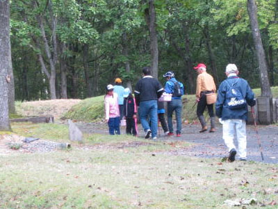 一寸したハプニングはマムシの手取り実演が行われたこと、1Lのペットボトルを片手にガイドクラブの熊さんが素手でエイヤと気合もかけずに素早く首を押さえペットボトルに収容、蓋をして一件落着。(実際は山で捕まえペットボトルの有る所まで首を持ったままぶら下げてきた)良い子は勿論 良い大人も真似をしないでください。若い女性がペットボトル片手にピースサインで写真に納まっていました、さすがに首には巻きませんでした。この時期の登山やキノコ狩りでは日当たりの良い所などで蛇が体を温めていることがあるので要注意、寒くなったのでスズメバチは大分勢力が衰えてきたと思います。