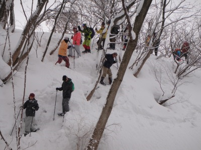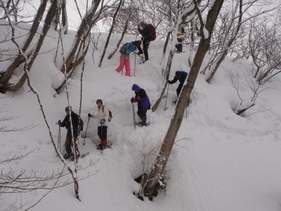 雪はやや重かったが、風もなく蒜山一帯がうす曇りの中に眺望でき、まずまずの天候であった。