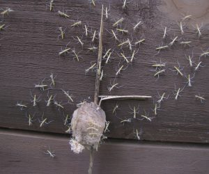 6/10 モリアオガエル 池などの止水面の上の木の枝に卵塊を作るのですが木が切られるとこのような所へ卵を産み付けます。