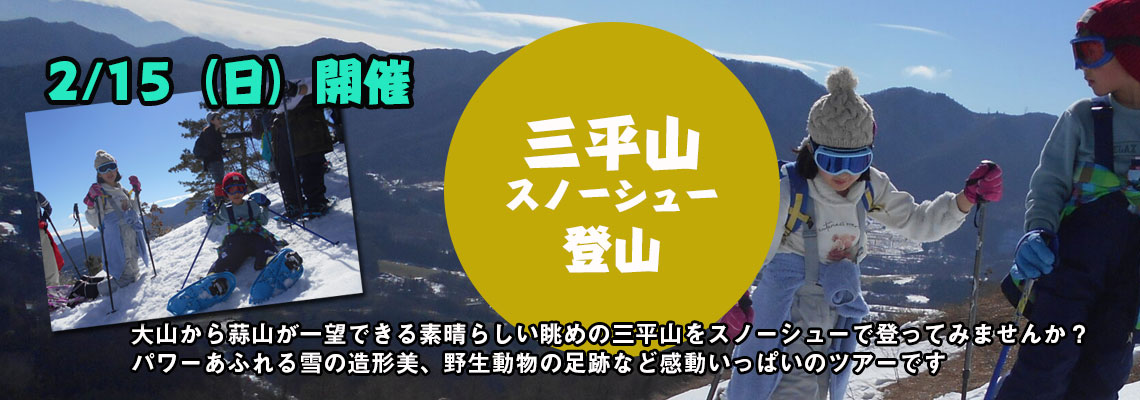 来年2026年、2月15日(日)に「三平山スノーシュー登山」を開催します!標高1010mの三平山をスノーシューで登ってみませんか?好天なら頂上から蒜山が一望できる山です。ぜひ、ご参加下さい。詳しくは>>>