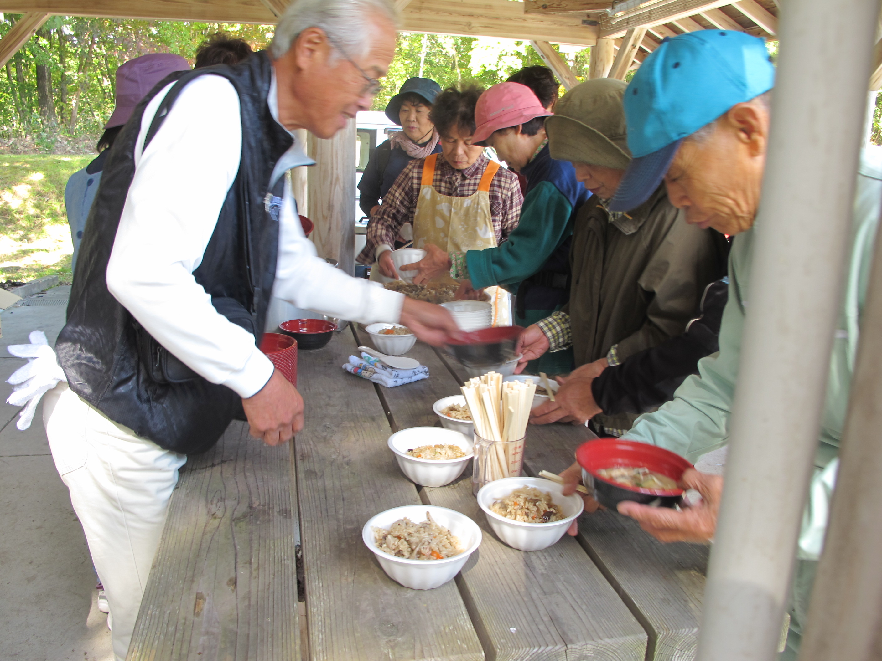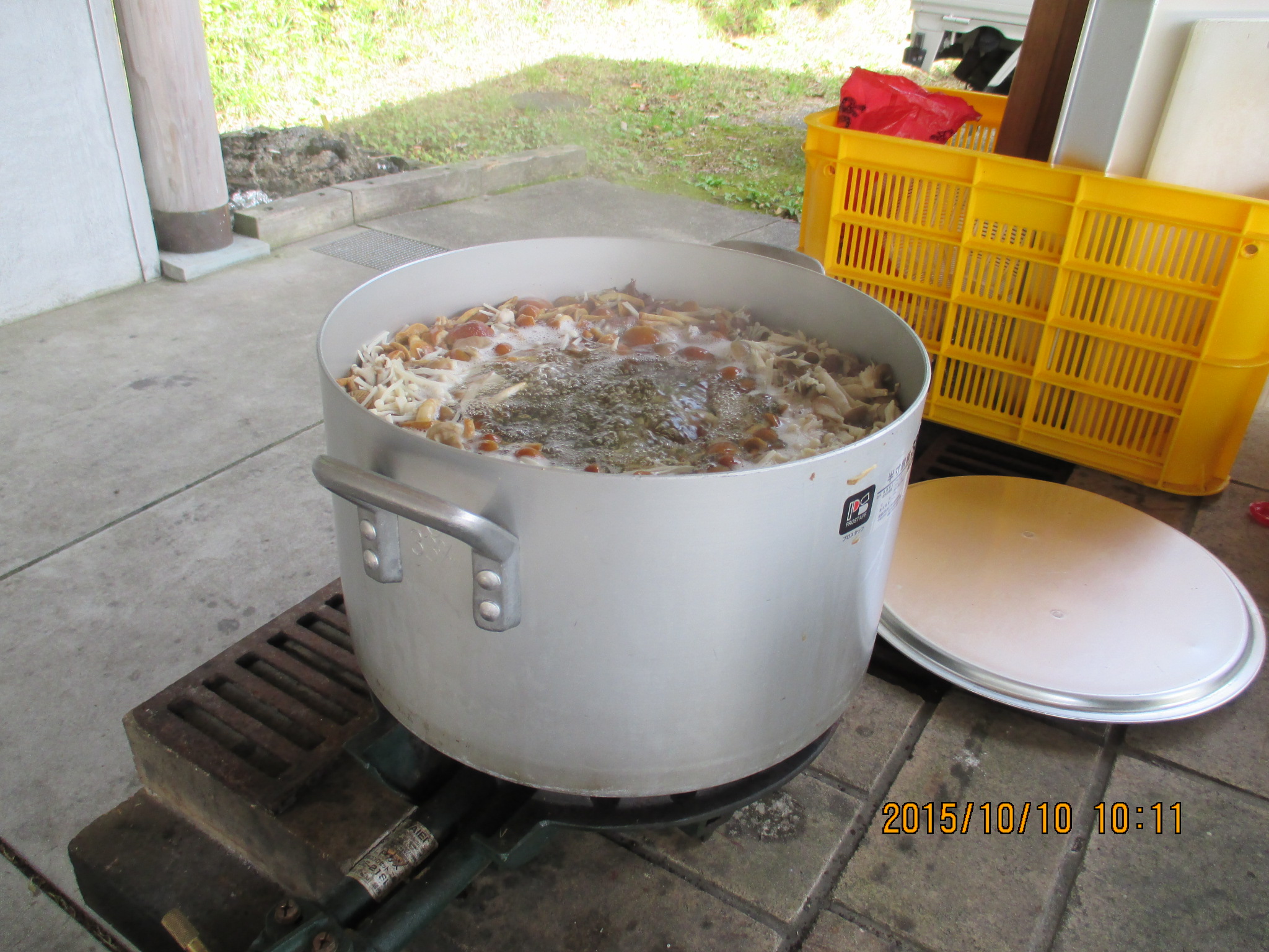 どちらも気持ちの良い秋晴れで山歩きには最適でしたが、今年はキノコが早めに出現し、端境期であったためキノコの採集量は少なめでした。これから晩秋のキノコが出てくるものと思います。キノコの炊き込みご飯とキノコ汁は評判がよく美味しいとおかわりがかなり出ました。