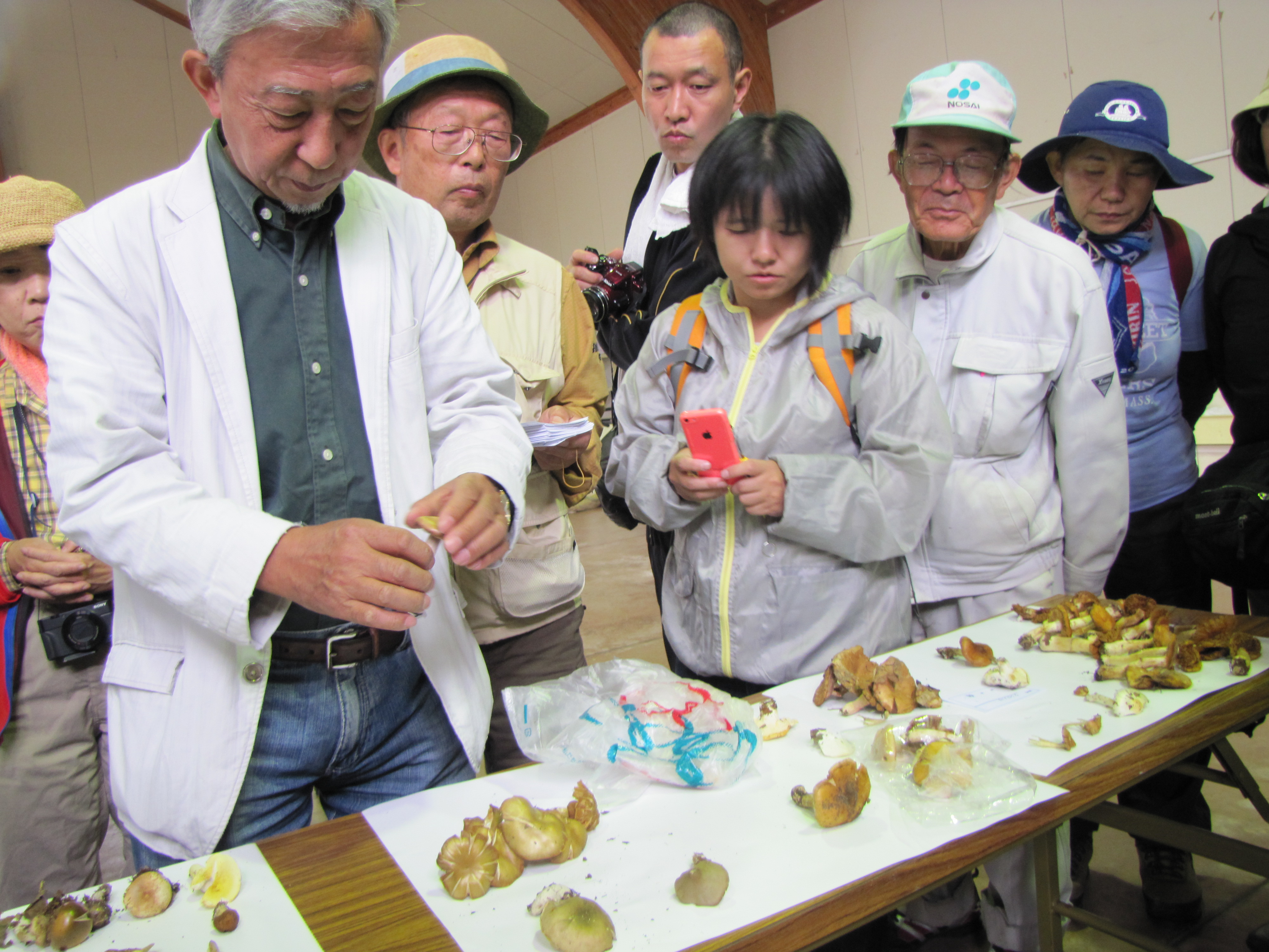 鑑定ではキノコの名前・食・毒の区別や食べ方などの説明をされ、みなさん熱心に聞いておられました。